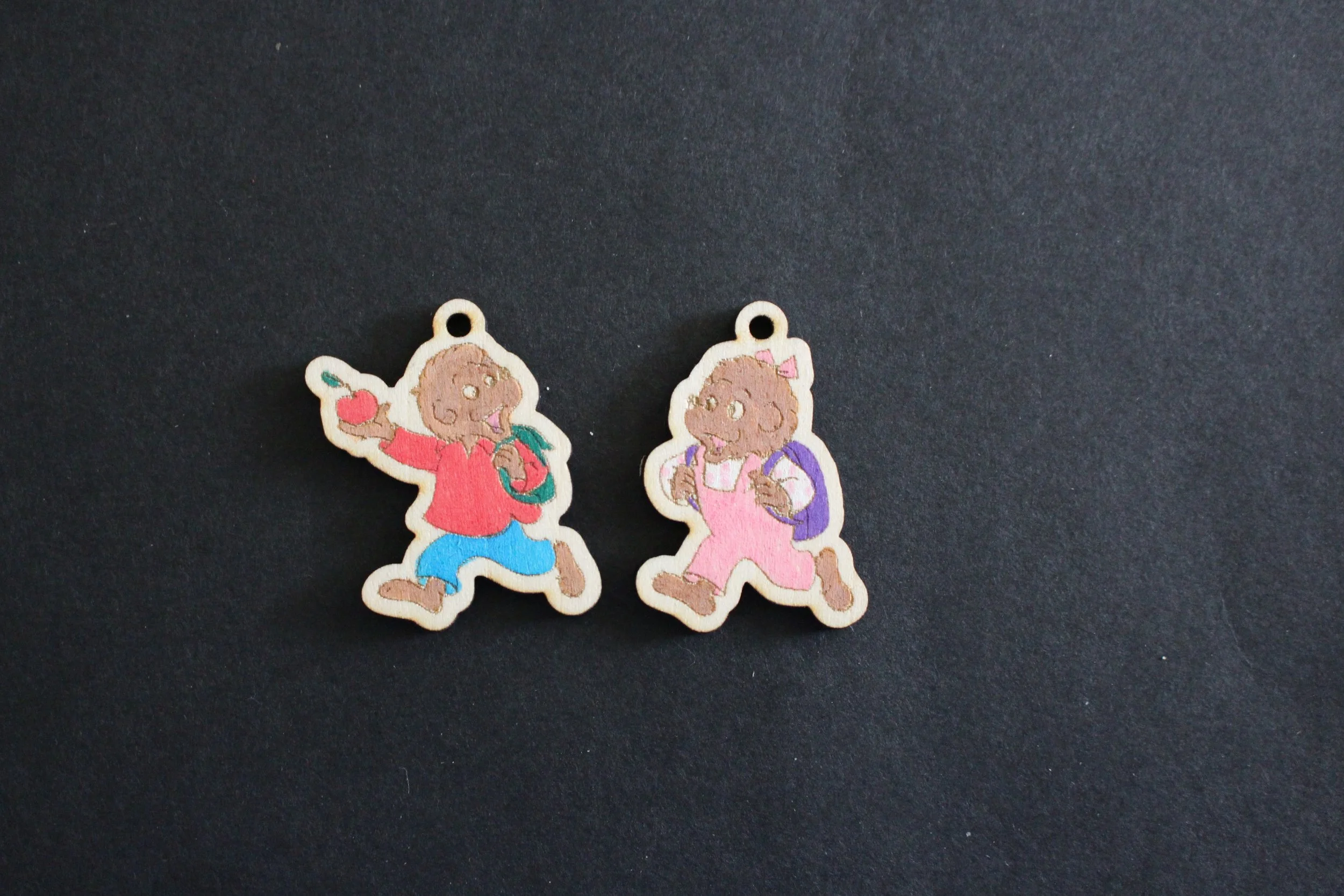 Explore a fun range of hand-painted wooden earrings inspired by popular children's book characters. Each pair captures the joy of storytelling and adds a playful touch to your look. Available in eye-catching finishes of silver, gold, or copper, these earrings can match your personal style and enhance any outfit. Celebrate your favorite stories and express your creativity with these stylish and special accessories.